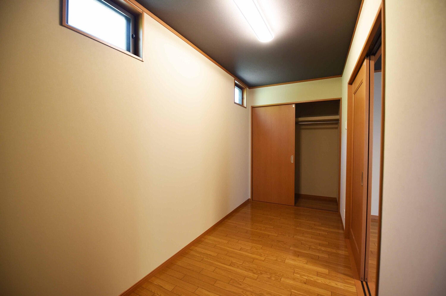 リビングにはクローゼットも完備。ダイニング部分との開口にアコーディオンドアなどを付ければ間仕切りすることも可能だ。