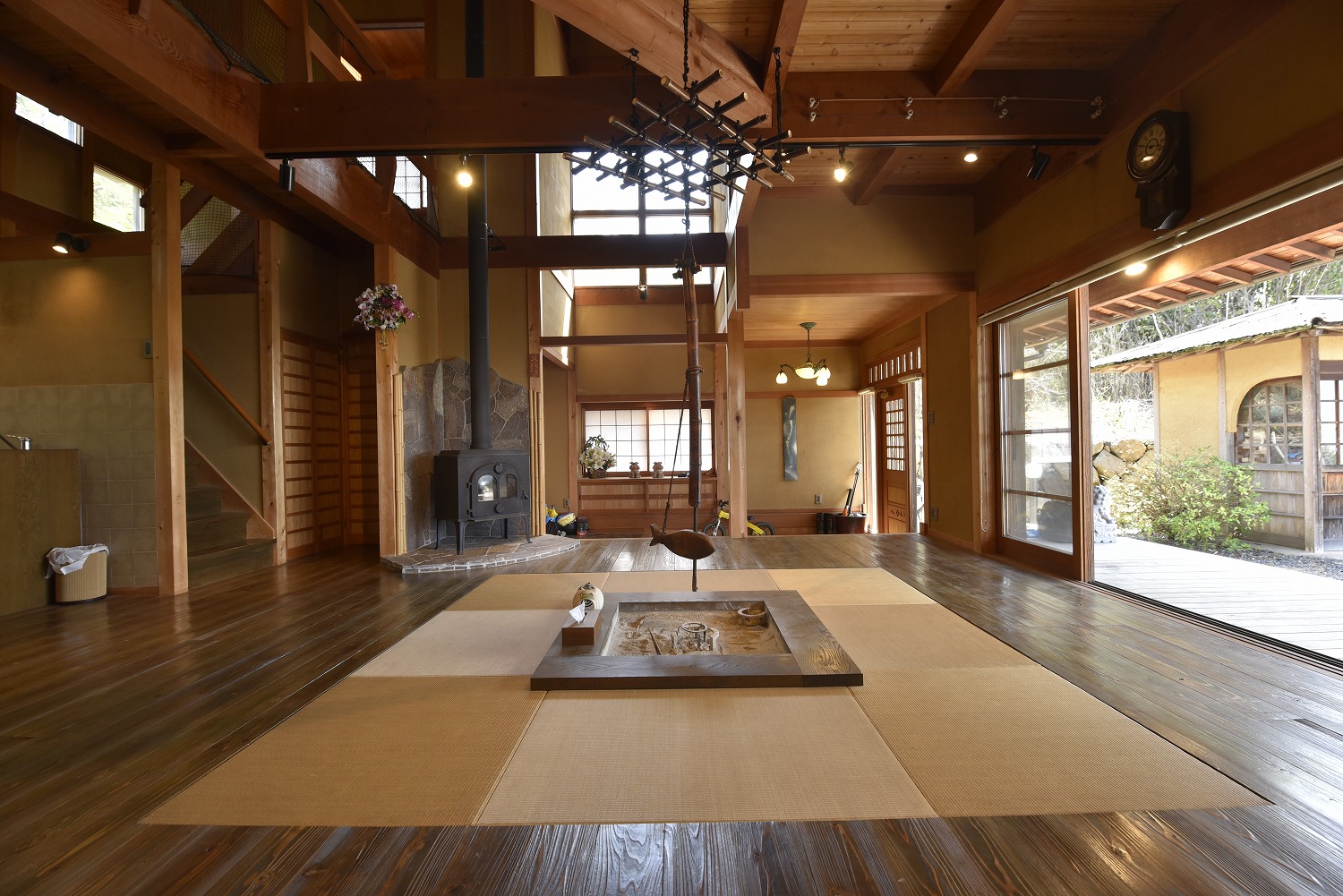 囲炉裏から南側の広縁方向を見た画像。日当たりも良く庭の様子が一望できる。